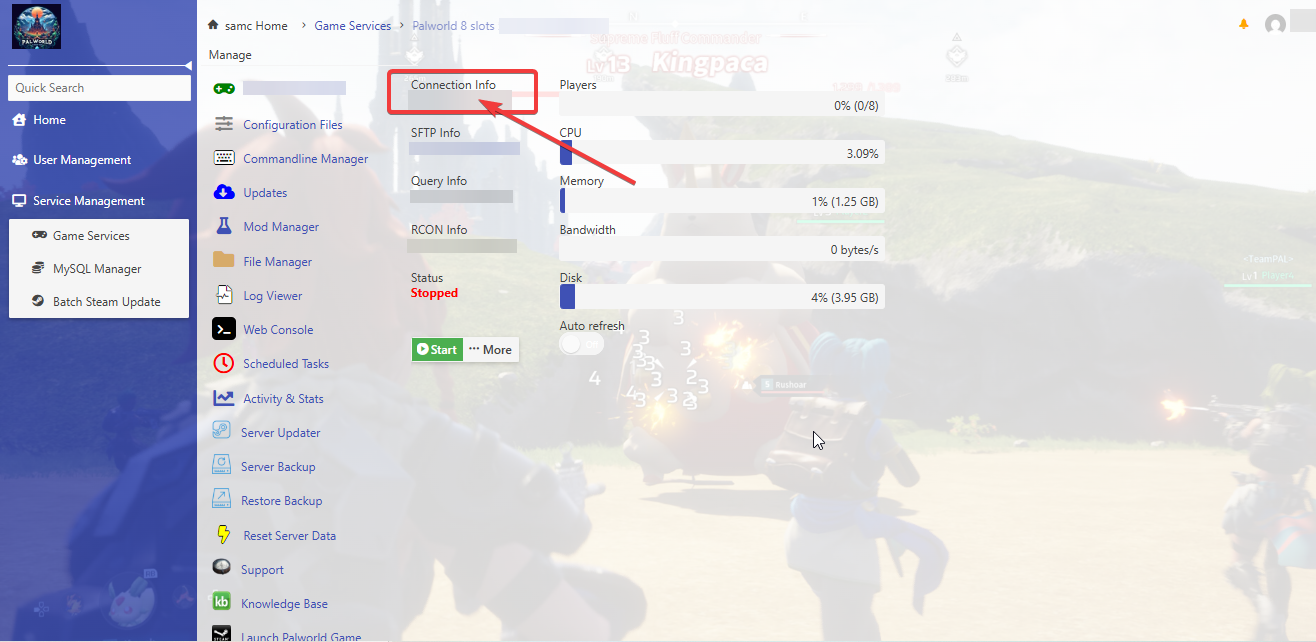 2. Once there, Copy the the IP and Port under the Connection Info section.