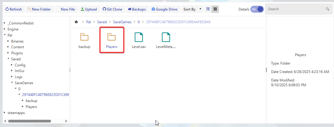 3. Navigate to Pal/Saved/SaveGames/0//Players/
